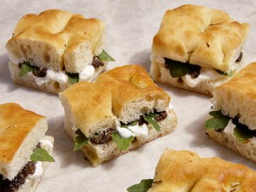 18 part de focaccias garnies de pistache, mortadelle & stracciatella